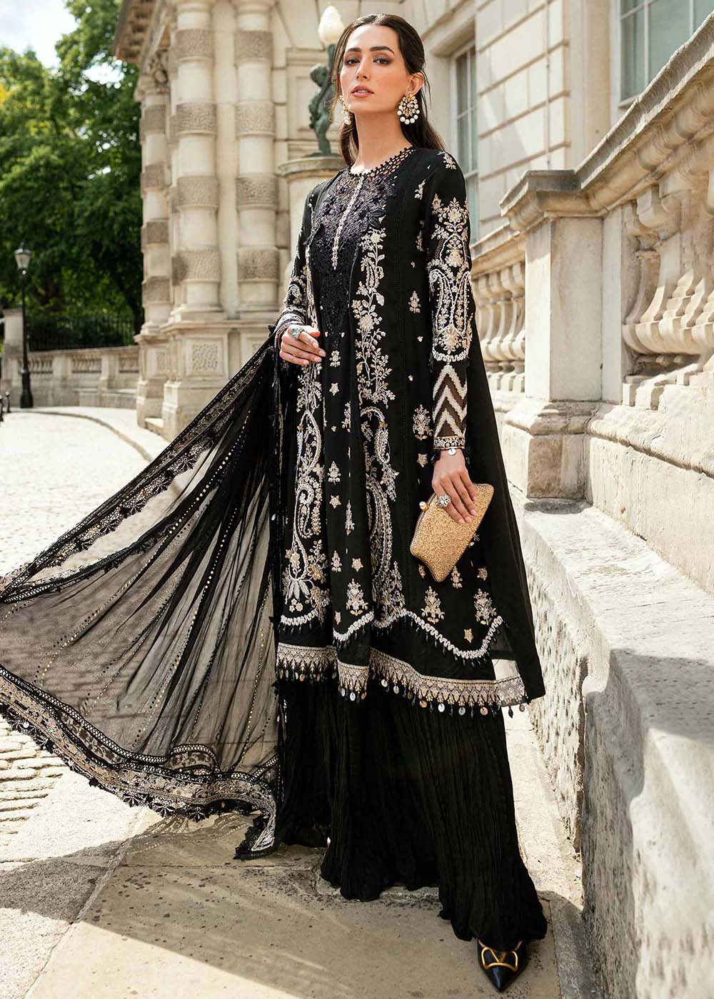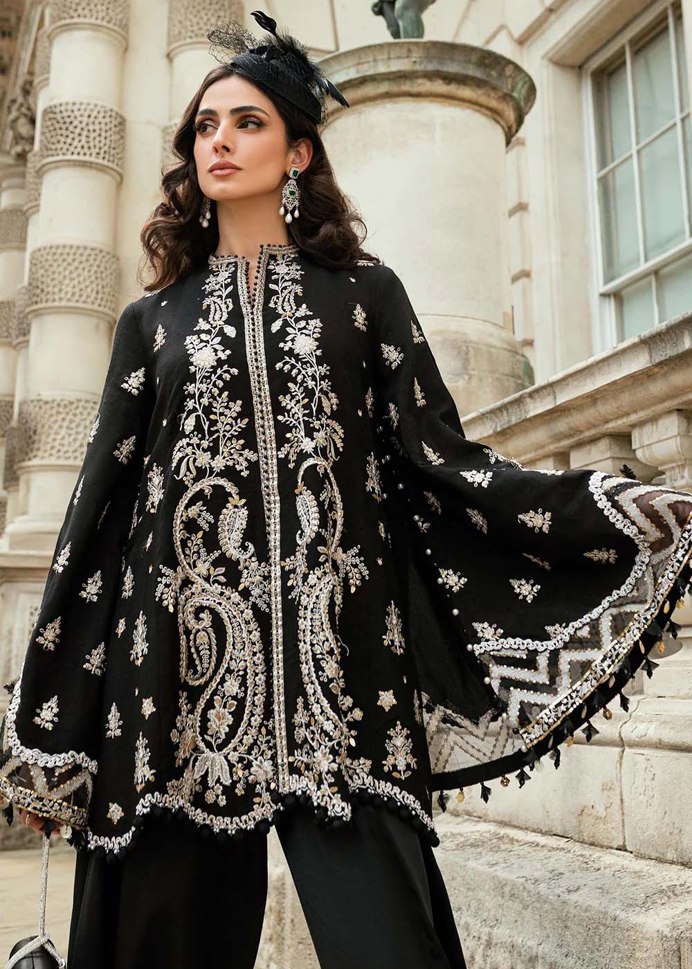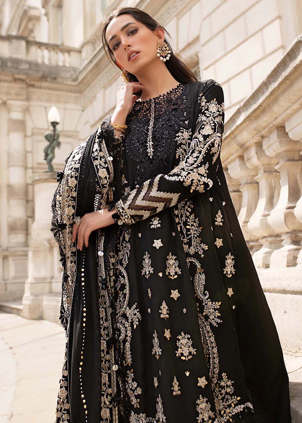 Unveil the epitome of sophistication with the Maria B Soiree Luxury Embroidered Collection ‘25. This stunning Black ensemble masterfully combines premium raw silk with exquisite embroidery and delicate diamond embellishments, creating a look that is both powerful and elegant. Designed for the modern woman who commands attention, this outfit is perfect for weddings, grand receptions, and festive celebrations where luxury meets tradition.