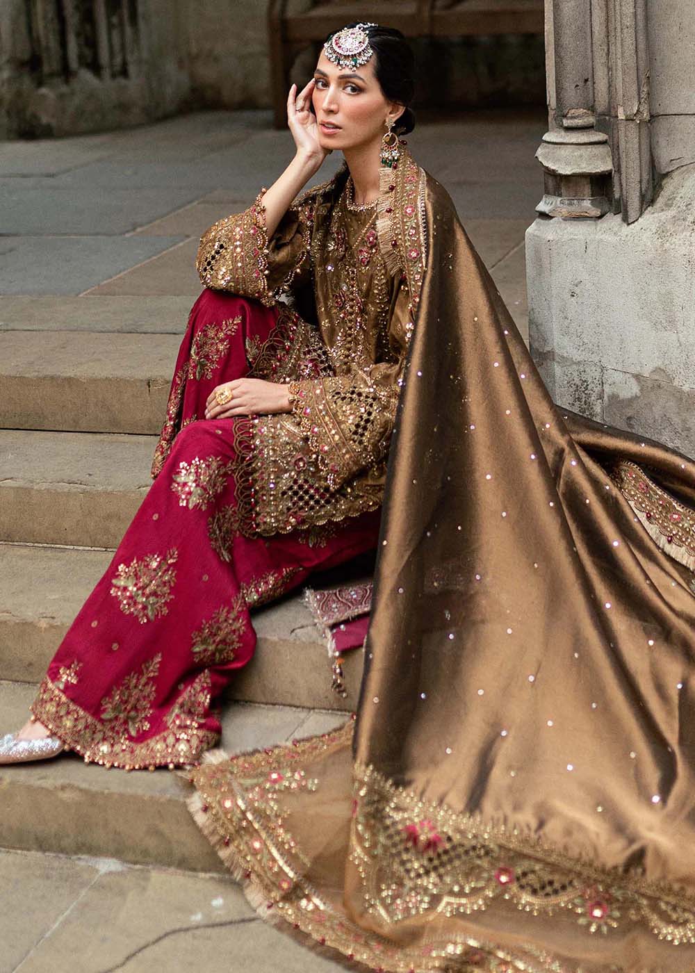 From subtle sparkle to statement elegance, the Maria B Soiree Luxury Embroidered Collection ‘25 presents this breathtaking Brown ensemble as a true piece of wearable art. Meticulously crafted from premium raw silk and adorned with exquisite hand embellishments, this outfit captures the perfect harmony of traditional craftsmanship and contemporary design. The luxurious tissue silk dupatta, delicately embellished with diamantes, adds a mesmerizing shimmer, making this ensemble ideal for weddings, festive galas, and grand celebrations where sophistication meets grandeur.